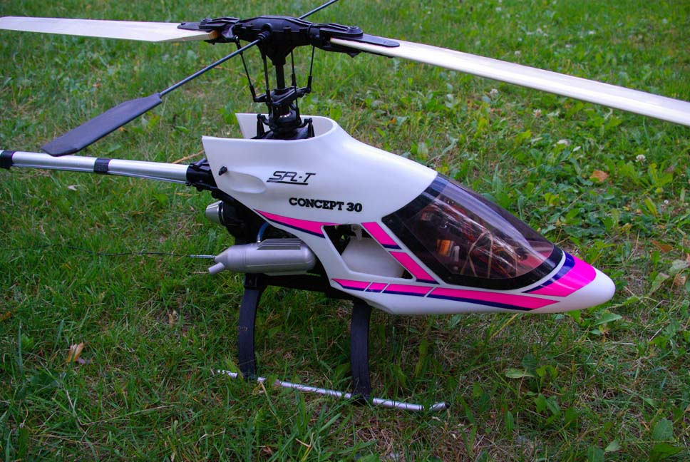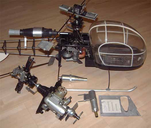 Endlich identifiziert! Es ist ein USA-kopie von Dieters Heli-Baby, Revolution 40. Damals gab es keine Zahnriemen - die