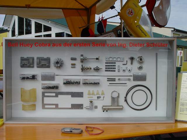 Dieter Schlüter hatte seinerseits seinen ersten Bausatz und andere Versuchsexemplare vom Hubschraubermuseum Bückeburg angefordert, die er diesem zur Verfügung gestellt hatte. Das Tellerrad in diesem Bausatz war noch mit einer Verschraubung auf der Achse befestigt um verschiedene Untersetzungen testen zu können.