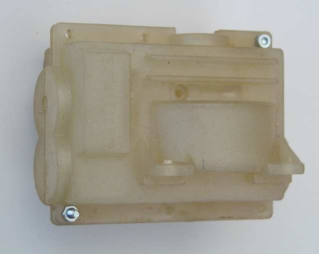 Hier musste ich eine herbe Enttäuschung einstecken. Diese beiden von mir mitgebrachten Ölbadgetriebe wurden von irgendeinem Modellflieger in Alu abgegossen. Als Vorlage diente lediglich das GFK Gehäuse der Firma Schuco-Hegi. Bekanntlich wurden die ersten 300 Bausätze von Dieter Schlüter mit