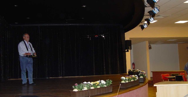 Noch während des Symposiums führte Bernd Pöting seinen Intellicopter vor. Ein Hightechgerät mit vier Rotoren. Die Flugeigenschaften waren perfekt. Dieter Schlüter übernahm den Sender und steuerte den Intellicopter, als habe er im Leben nichts anderes getan. Gelernt ist halt gelernt. Urgesteine der Modellhubschrauber-Szene