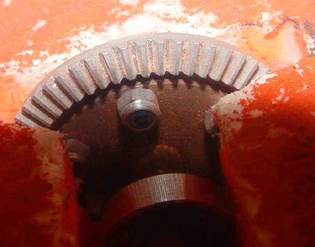Schneckengetriebe aus dem Automobilbau. Da das Getriebe durch die Motordrehzahl sehr heiss wurde, baute der findige Entwickler ein Lüfterrad davor. Rechts vor dem Hauptgetriebe sieht man die Kupplungsglocke. Das Nachfolgemodell hatte sogar eine separate Ölkühlung. Mit dieser Anordnung gelang Dieter Schlüter der erste Weltrekord.