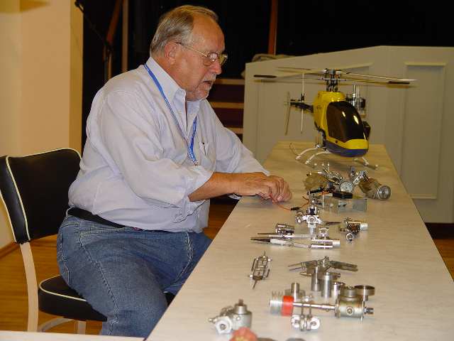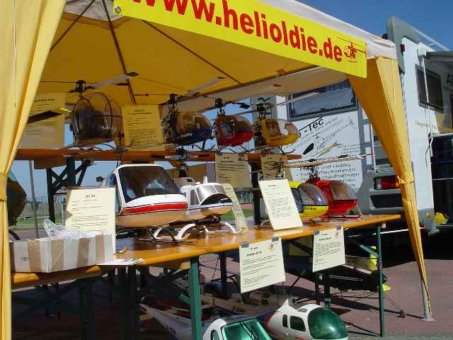 Links Albert Koch. Auch er hat unseren Stand besucht. Albert Koch experimentiert heute noch mit Rotorköpfen (Rigid) und stellt Rotorblätter her. Zum System 80 entwickelte er einen Tuningrotorkopf siehe http://www.helioldie.de/rotorkoepfe.html