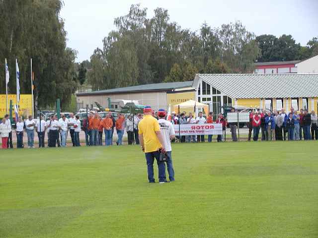 Schlüter. Im Hintergrund sind die Mannschaften der einzelnen Nationen zu sehen.