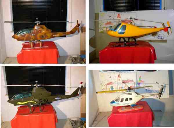 in dreifacher Ausfertigung eine Schlüter Bell 222 . Die Graupner Bell 212 Twin
