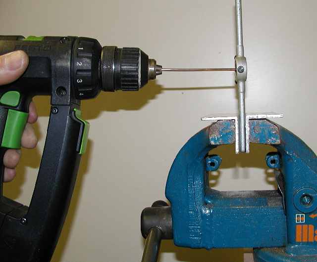 Für die Herstellung von Steuergestängen für unsere Helis verwende ich Schweissdraht im Durchmesser von 2,5 mm. Das Materials des Schweissdrahtes ist ideal. Der Stahl ist nicht aus weichem Eisen, aber auch nicht besonders hart (weiss jemand das Material?). Zudem ist die Oberfläche verkupfert und somit gegen Rost einigermassen resistent. Der Preis dafür liegt im Eisenwarengeschäft bei ein paar Cent für einen Meter des Materials. Und so wird´s gemacht: Das Gewindeschneideisen wird in den Schraubstock gespannt. Der abgelängte Schweissdraht wird in einen Akkubohrer geklemmt und vor dem Gewindeschneiden in Schneidöl getaucht. Mit der untersten Drehzahl wird nun das Gewinde geschnitten. Achtung! Der zu schneidende Draht darf nicht verkantet werden, schon gar nicht beim zurück drehen, sonst wird das Gewinde zu klein geschnitten. Fehlerquellen sind immer eine zu hohe Drehzahl, zu wenig Schneidöl und wie gesagt, der nicht exakte Winkel zum Schneideisen. Anhang: Erfahrungsgemäß gibt es die, wenn man nach dem Schneiden das Schneideisen ausspannt und den Draht manuell aus dem Schneideisen dreht. Neu! Die Firma Bernhard hat sich bezüglich des
